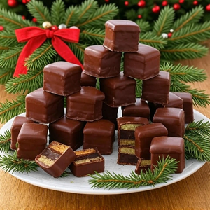 Der Ursprung der Dominosteine ist eng mit der deutschen Backtradition und insbesondere mit der Weihnachtszeit verbunden. Sie wurden erstmals in den 1930er Jahren von der Firma Bahlsen in Hannover entwickelt. Der Schokoladenhersteller suchte nach einer Möglichkeit, überschüssige Schokolade aus der Osterproduktion sinnvoll zu verwenden, und kombinierte diese mit typischen Weihnachtslebkuchen- und Marzipanbestandteilen. Und zack – Da waren die Dominosteine! Die genaue Rezeptur wurde von Bahlsen weiter perfektioniert, und das Gebäck wurde schnell zu einem traditionellen Weihnachtsgebäck in Deutschland.