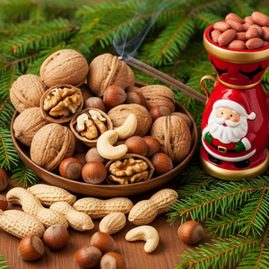 Früher waren Nüsse ein Zeichen für Wohlstand und wurden deshalb auch als Baumschmuck am Weihnachtsbaum verwendet. Im süddeutschen Raum lässt man sie oft natürlich – aber man hängt sie auch gern vergoldet oder versilbert an die Tannenzweige oder steckt sie an den Adventskranz oder einem Gesteck. Und dann ist da noch die Sache mit dem Nikolaus … Am Nikolaustag werden traditionell die Schuhe oder Stiefel mit Nüssen gefüllt. Bei einem anderen Brauch wirft der Nikolaus den braven Kindern Nüsse durch das Fenster – geöffnet natürlich^^.