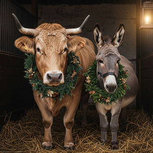 Ziemlich trockener Stoff – geb ich zu, aber auch irgendwie interessant. Ochse und Esel sind mehr als nur Tiere, die in der Weihnachtsgeschichte wie Statisten im Film in der Gegend rum stehen. Sie sind Symbole für die Welt, die Jesus empfängt, und für die Hoffnung auf Erlösung, die mit seiner Geburt verbunden ist.