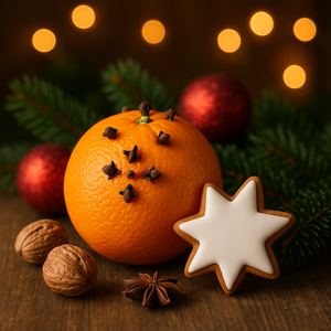 Die Orange ist eine weihnachtliche Zugabe, die seit frühester Zeit ein Zeichen für Wohlstand war, heute aber eher auf fruchtige Art und Weise für Wärme und Sonne steht, was besonders in der dunklen Jahreszeit eine willkommene Botschaft ist.