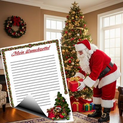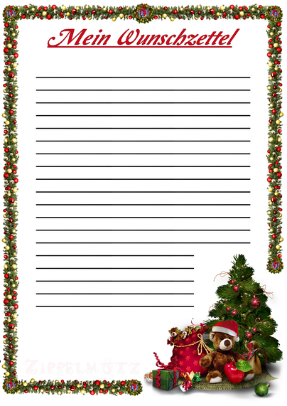 Noch ein paar Hinweise: Man muss den Wunschzettel nicht mit Wünschen voll schreiben. Ein paar nette Zeilen an den Weihnachtsmann oder das Christkind machen sich immer gut. In Schönschrift wäre natürlich ein Träumchen. Also vielleicht erst einmal die Wünsche auf einem Schmierzettel vor schreiben und dann sauber auf den Wunschzettel übertragen.
